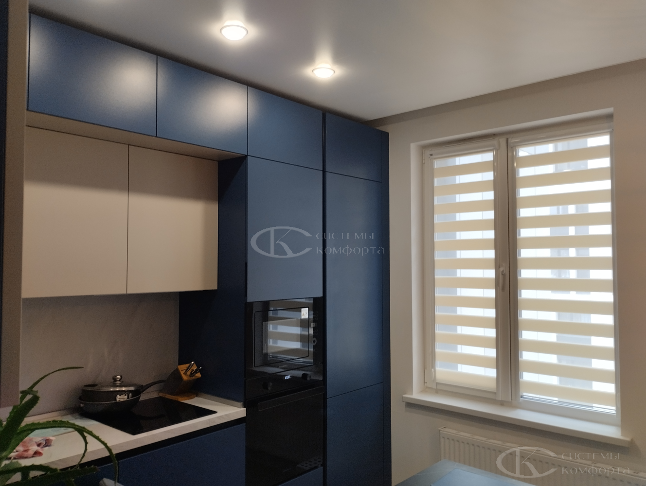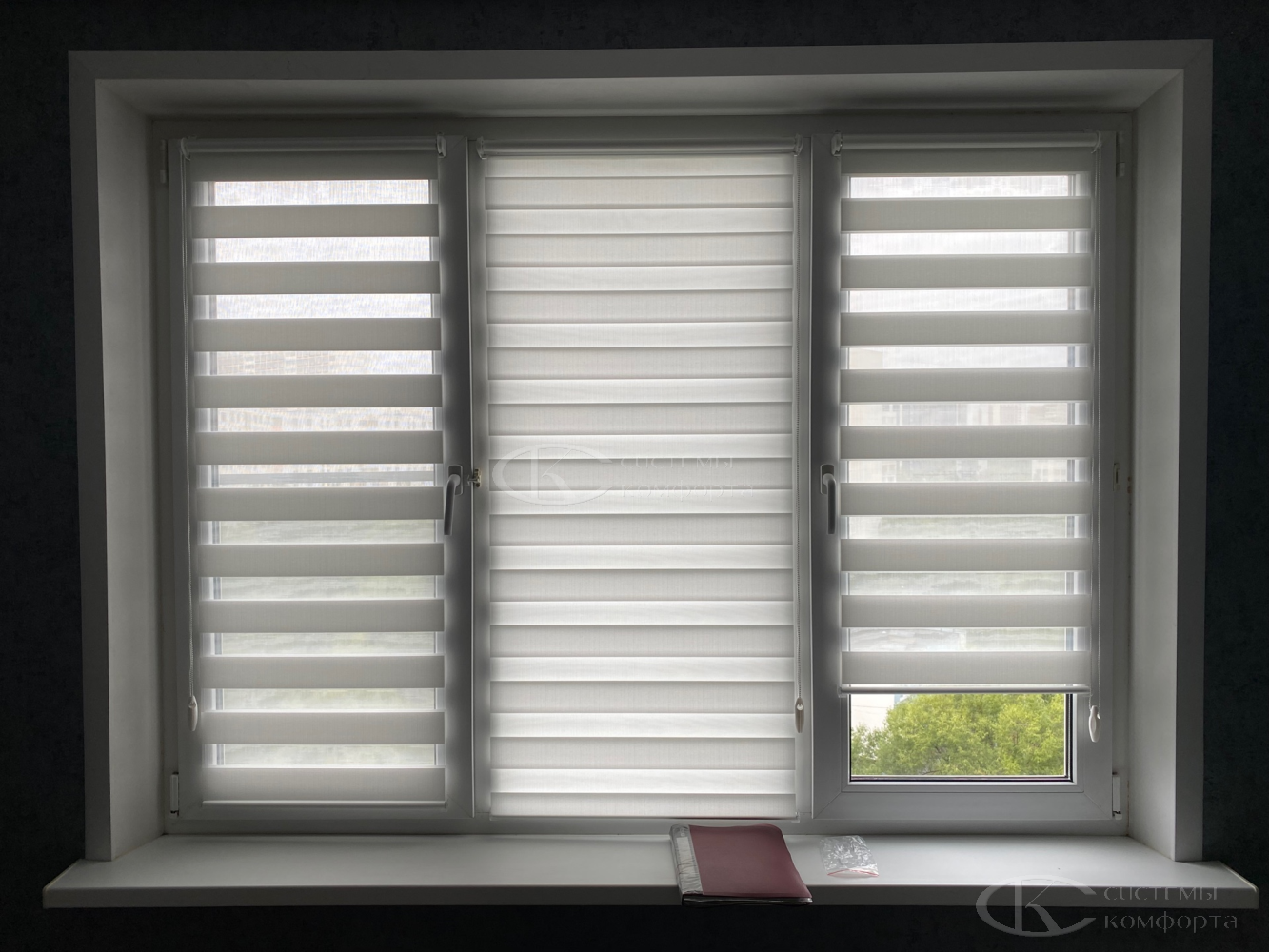 Классические рулонные шторы изготавливаются из огромного разнообразия тканей – от воздушных и полупрозрачных до абсолютно плотных, не пропускающих свет («блэкаут»), что позволяет подобрать решение для любой задачи и комнаты. Для тех, кто ценит гибкий сценарий освещения, идеальным выбором станут шторы «День-ночь», также известные как «Зебра». Их уникальная конструкция состоит из чередующихся прозрачных и плотных полос; регулируя их положение относительно друг друга, вы плавно управляете потоком света, создавая любой уровень затемнения между «светло» и «темно». Это оптимальный вариант для спальни и детской, где важно и мягкое утреннее пробуждение, и полная темнота для глубокого сна.